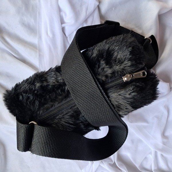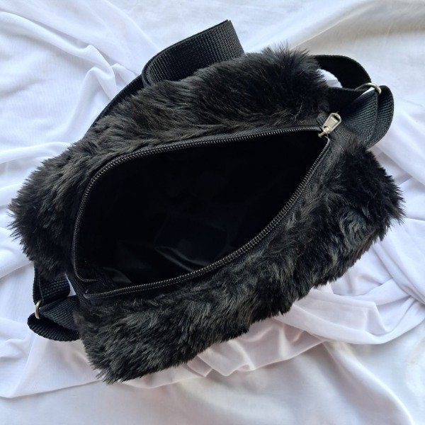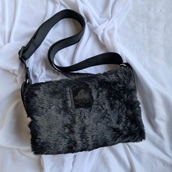 Cartera suave confeccionada con peluche y tela impermeable por dentro. Posee cintas regulables de 1,50 CM para usarla al hombro o cruzada tipo morral.
