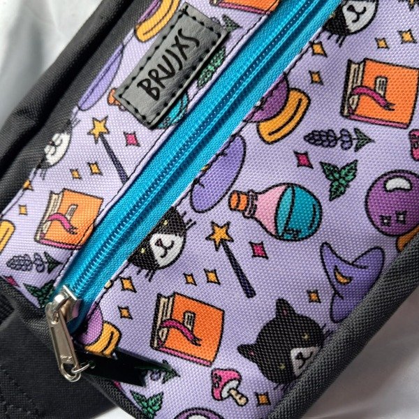Posee doble cierre, bolsillo frontal, compartimento principal y bolsillo en el interior, forrada por dentro con silver. Costuras internas reforzadas con cinta al bies.