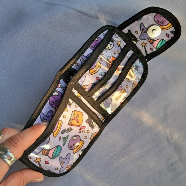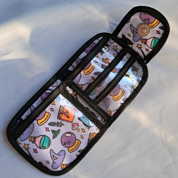Billetera confeccionada en cordura, tela impermeable, y hule cristal en los bolsillos de su interior.