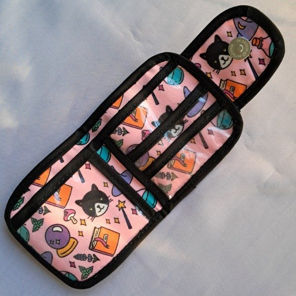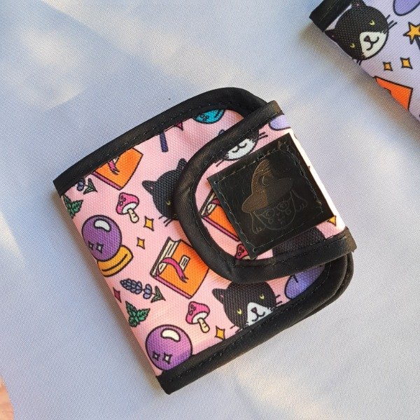 Billetera confeccionada en cordura, tela impermeable, y hule cristal en los bolsillos de su interior.